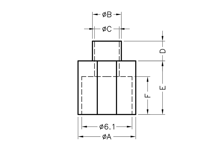Cup Shoulder washer D-Shape. Screw recessed area (IDxH) Ø6.1×4.2mm. Screw diameter Ø3.0mm. Total height 5.0mm. Material Nylon 46 (UL) / PPS (UL)Color Natural/Black