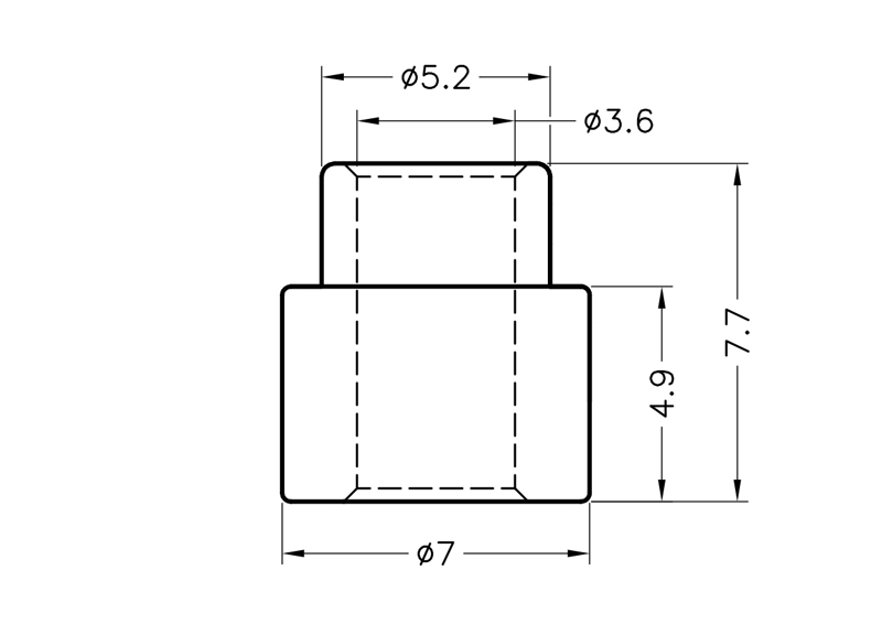 Shoulder washer D-Shape or Screw Insulator Nylon 66 (ØAxØBxØCxDxE) 7.0×5.2×3.6×4.9×2.8mm. Color Natural/Black. Can also be used as a sleeve bearing. Different material and Flame Rating options available
