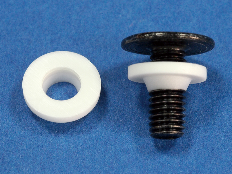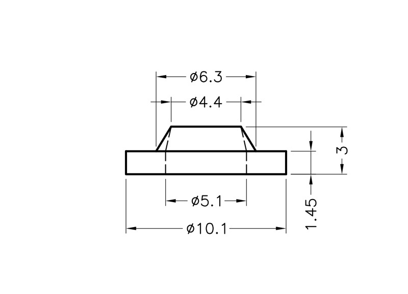 Conical Shoulder washer or Screw Insulator Nylon 66 (ØAxØBxØCxDxE) 10.1×5.1×4.4×1.45×1.55mm. Color Natural/Black. Different material and Flame Rating options available