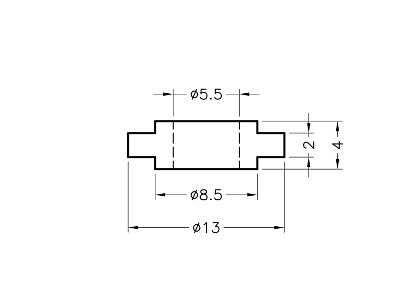Shoulder Washer Cross-profile. (ØAxØBxØCxDxE) 13.0×8.5×5.5×2.0x1.0mm. Nylon 66. Color Natural/Black