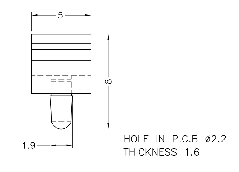 Snap Lock Edge PCB Holder. For a 0.9mm PCB. Hole Ø 2.2mm Panel Thickness 1.6mm