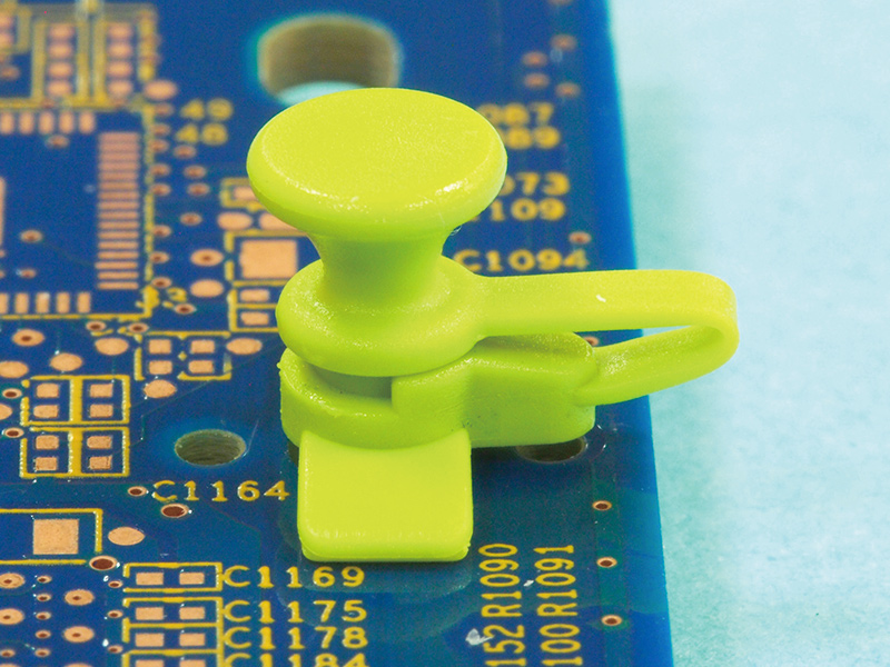 M.2 (NGFF) board Spacer Snap In Turn Mounting Retention Clip . Height 2.5mm. Mounting Hole Thickness 1.8-2.6mm. Material Nylon 66. Color Natural/Black/Green/Blue. A vertical push-to-lock/unlock design firmly secures the M.2 card for reliable mechanical stability.