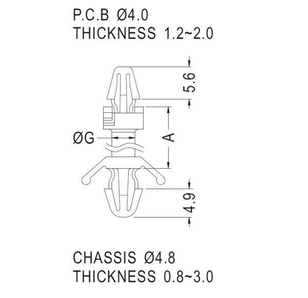 Dual locking support post, arrowhead fix for a top hole of 4 mm and arrowhead fix with tension wing for 4.8 mm bottom hole. Spacer length is 28.8 mm.