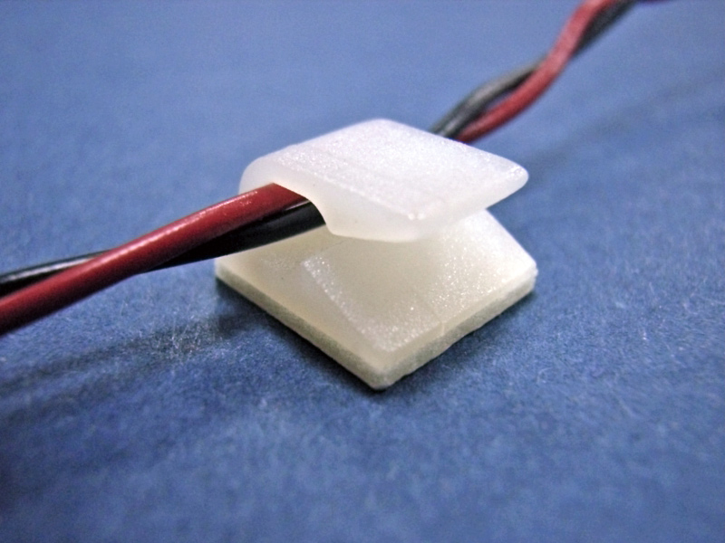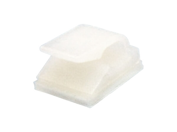 Adhesive Mount 10.0×9.4mm Round Wire Clip Side Entry. Holding dia. Ø4.3mm. Material Nylon 66. Available in Natural or Black