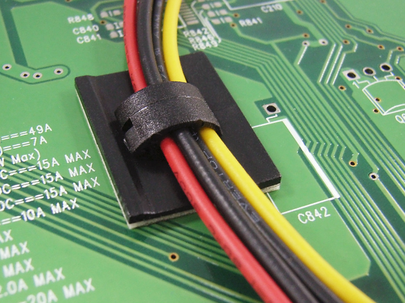 Adhesive Mount 15.0×19.5mm Round Lock Wire Clip. Max. holding dia. Ø3mm. Material Nylon 66. Available in Natural or Black