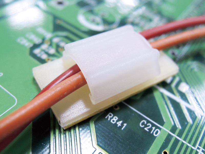 Adhesive Mount 10.0×20.0mm Round Lock Wire Clip. Holding Dia. Ø3.0mm. Material Nylon 66. Available in Natural or Black