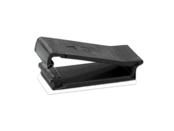 Flat Cable Clip Lock 21.85×4.87mm Self Adhesive. Cable Width 18.5mm. Nylon 66. Color Natural or Black