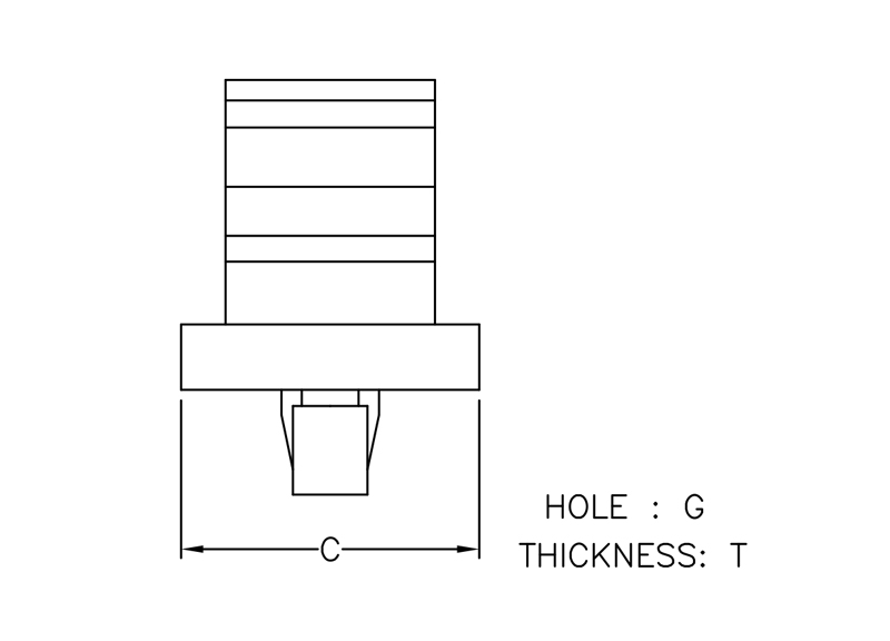 Snap Lock Round Cable Clamp with Locking. Nylon 66. Bundle Size Ø19.5mm. Mounting hole Ø6.35mm. Chassis Thickness 0.8-1.6mm. Available in Natural,Black or Gray