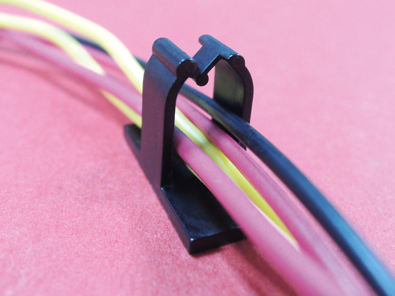 Top Entry Latch Gate Micro Wire Saddle with Adhesive Base 8.0×20.0mm. PA66. Available in Natural and Black