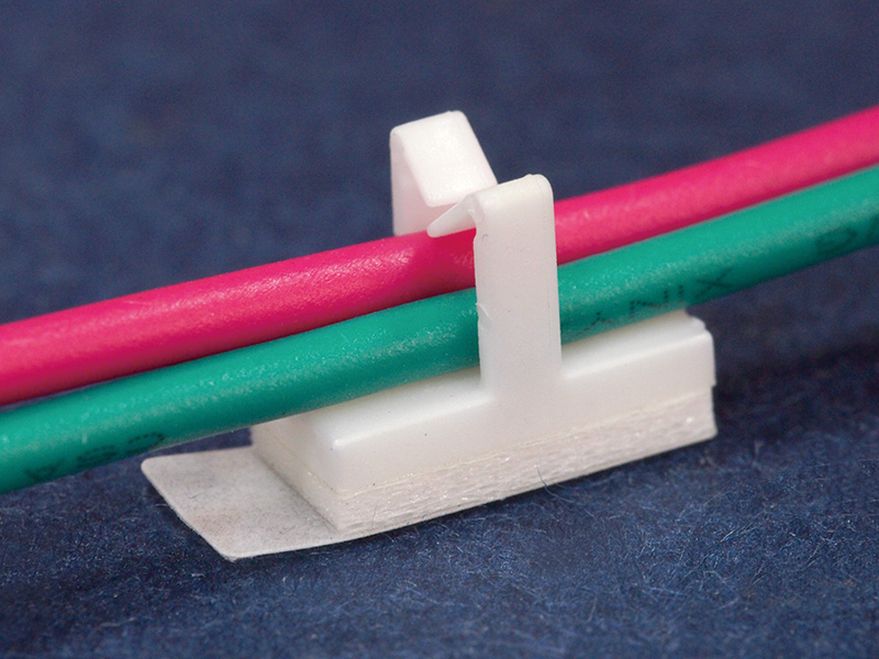 Top Entry Latch Gate Micro Wire Saddle with Adhesive Base 5.0×10.0mm. PA66. Available in Natural and Black