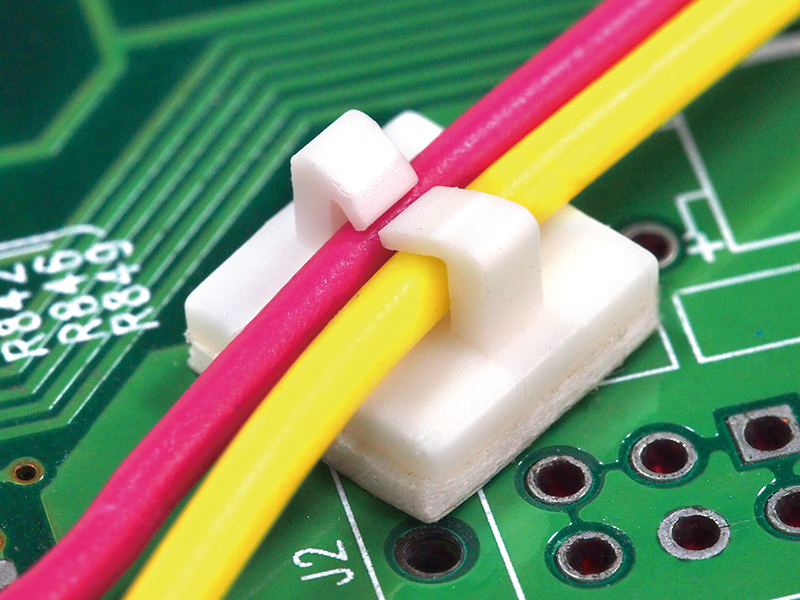 Top Entry Micro Wire Saddle with Adhesive Base 8.0×8.0mm. PA66. Available in Natural and Black