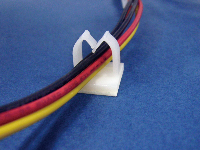 Top Entry Latch Gate Micro Wire Saddle with Adhesive Base 12.7×12.7mm. PA66. Available in Natural and Black