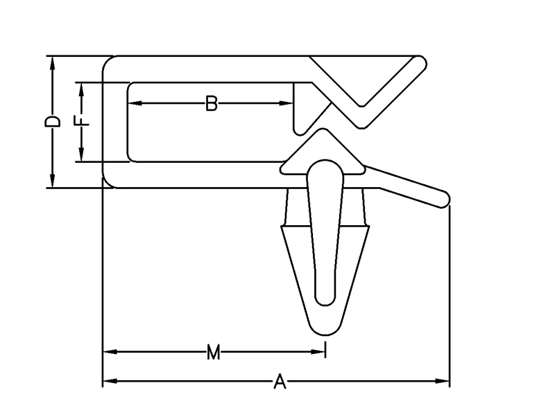Snap Lock Mount Wire Clip Side Entry Lock. Holding Area (WxH) 10.0×4.8mm. Mounting Hole dia. Ø4.8mm. Chassis Thickness 2.0mm. Material Nylon 66. Available in Natural or Black