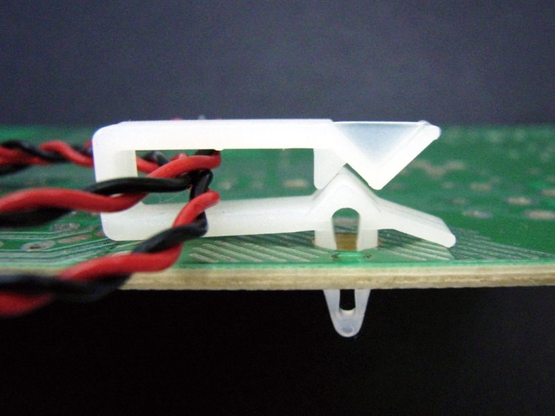 Snap Lock Mount Wire Clip Side Entry Lock. Holding Area (WxH) 6.6×4.8mm. Mounting Hole dia. Ø4.8mm. Chassis Thickness 2.0mm. Material Nylon 66. Available in Natural or Black