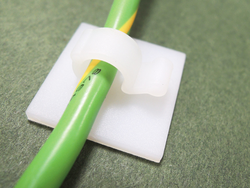 Adhesive Mount 19x19mm Round Wire Clip. Holding dia. Ø6mm. Material Nylon 66. Available in Natural or Black