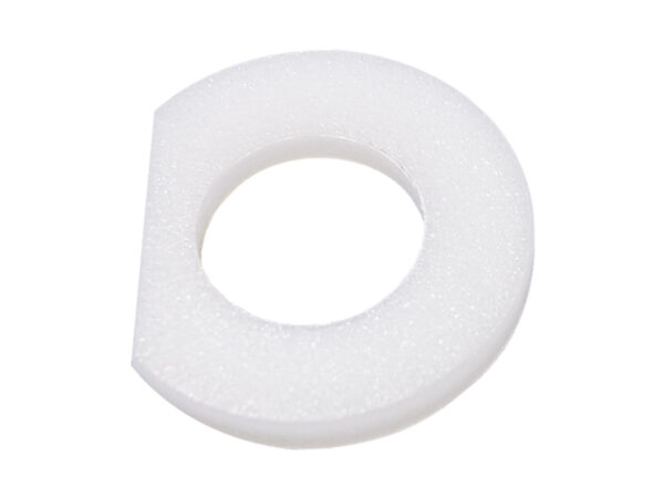 Flat Washer D-Shape. Nylon 66. 12.7×6.35×6.35mm.(ODxIDxH). Color Natural or Black. Used with bolts and nuts to provide electrical insulation, distribute load evenly, create seals, and reduce friction.