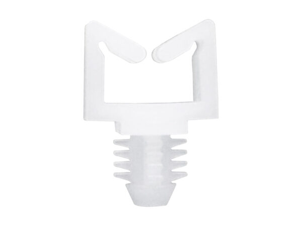 Blind Hole Wire Saddle (WxH) 11.1×21.0mm. Drill Hole dia.Ø7.9mm. Chassis Thickness 6.4mm. Material Nylon 66. Available in Natural or Black.
