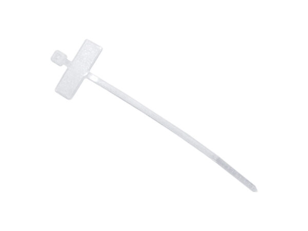 Marker Cable Tie (LxW) 100×2.5mm. Bundle dia. Ø22mm. Tensile Loop Strength 8 kgs. Nylon 66. Available in Natural & Black.UL Reognized. Comes with a rectangular tab suitable for attaching labels, or to be written on